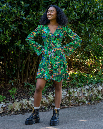 Pre Order Rebel Romance Pond Birds Flared Wrap Mini Dress