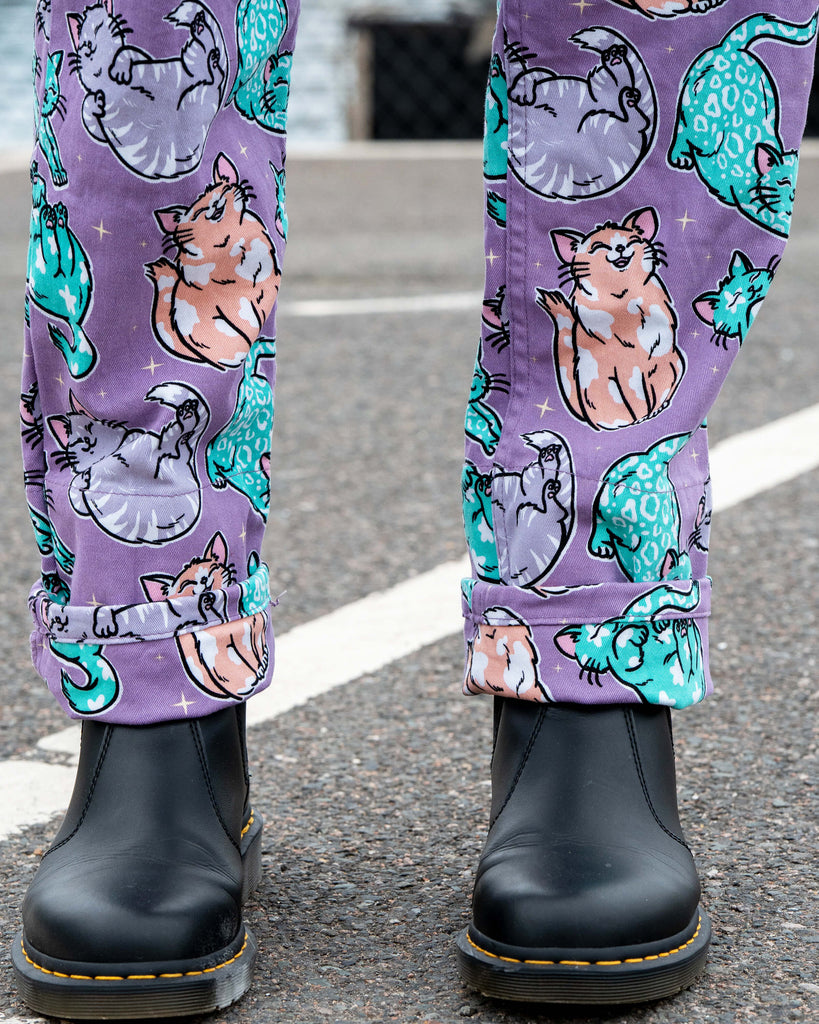PRE ORDER Rebel Romance x Abi Perry Purrfect Cats Stretch Dungarees