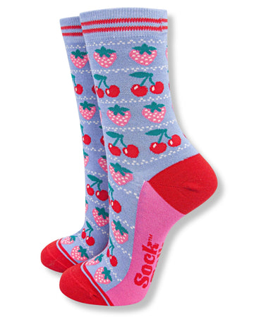 Strawberry and Cherry Bamboo Socks – Blue Fair Isle UK 3-7