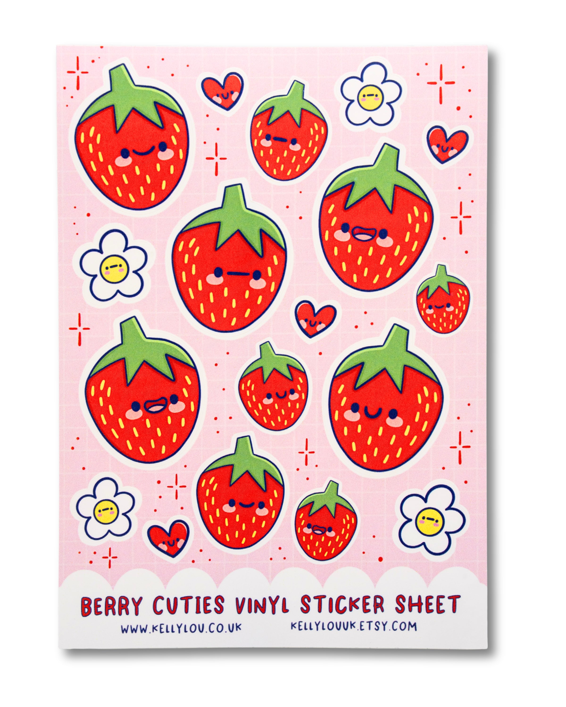 The Berry Cuties Vinyl Sticker Sheet by Kelly Lou is here to sweeten your day with 22 adorable waterproof stickersinspired by everyone’s favourite duo, tea and biscuits! With a cute berry twist, this A6 sheet is perfect for adding charm to your laptop, water bottle, journal, or wherever you need a little pick me up.