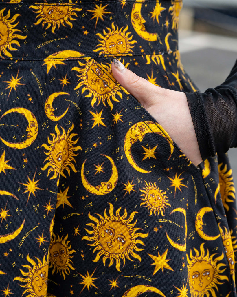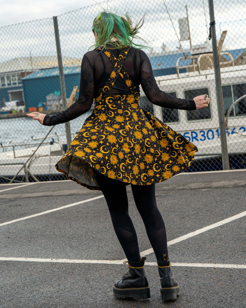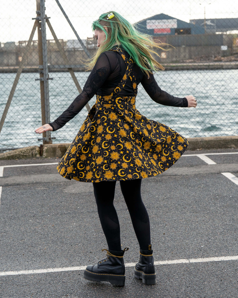 I am so excited about these dungarees! Canāt wait to wear them on Christmas Day (though Iāll be wearing them before that too). The pattern is really cute and the background is a lovely shade of dark green. Very comfy and just enough stretch too. Iām an XS in Run and Fly and bought an XS in these, and theyāre the same fit.