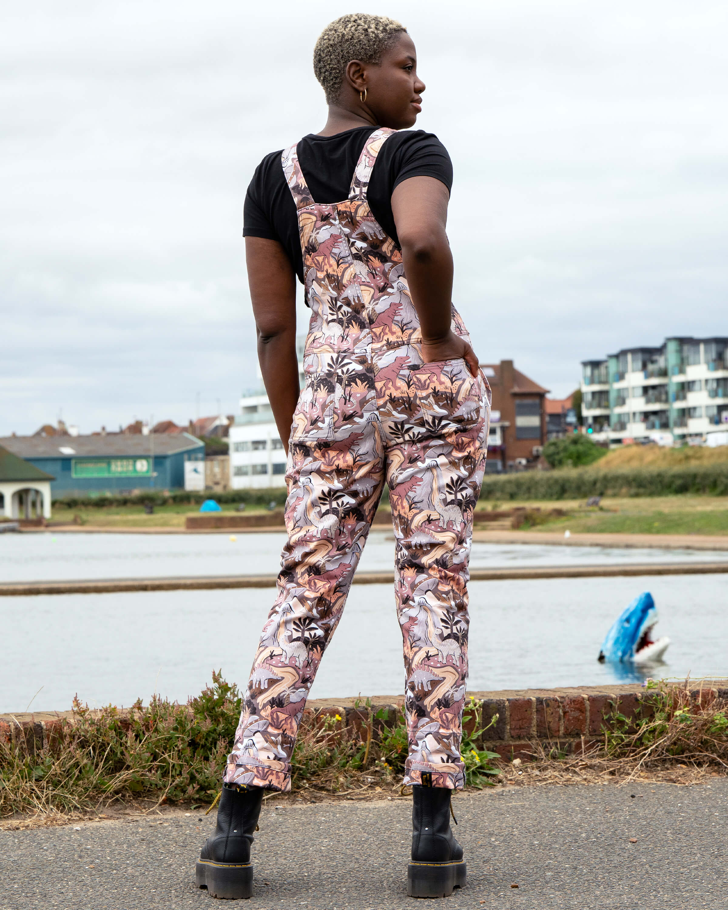 Designed by milkteef, this charity print blends earthy neutrals with a prehistoric twist, dinosaurs roaming through dreamy landscapes with a surprise UFO fly by! They're made for everyday adventuring, with stretch twill comfort, five handy pockets, and an ethical soul to boot.