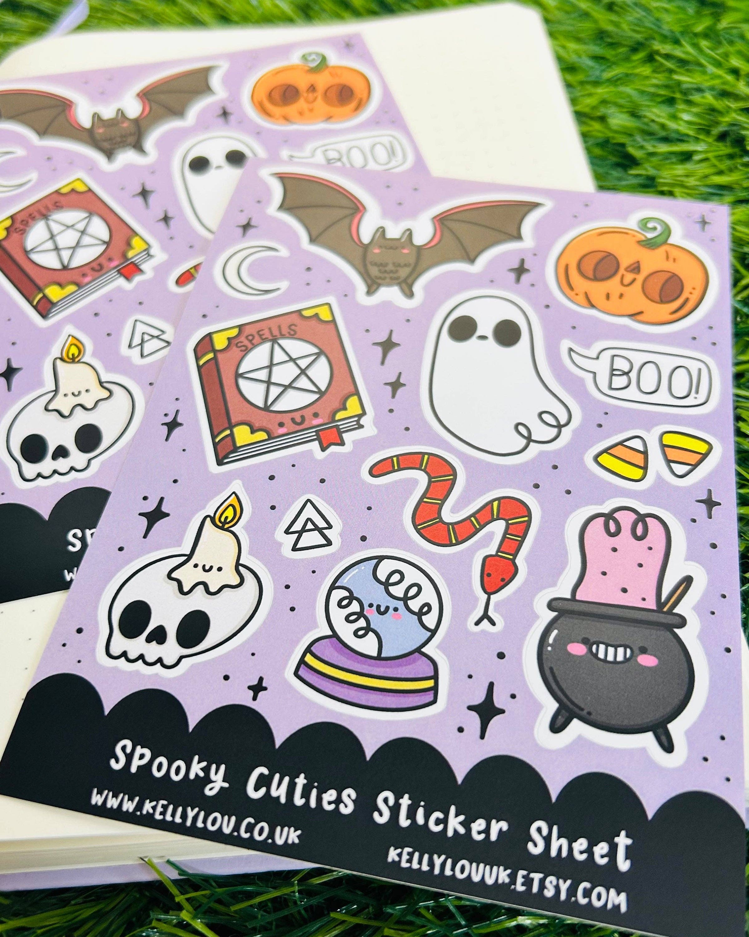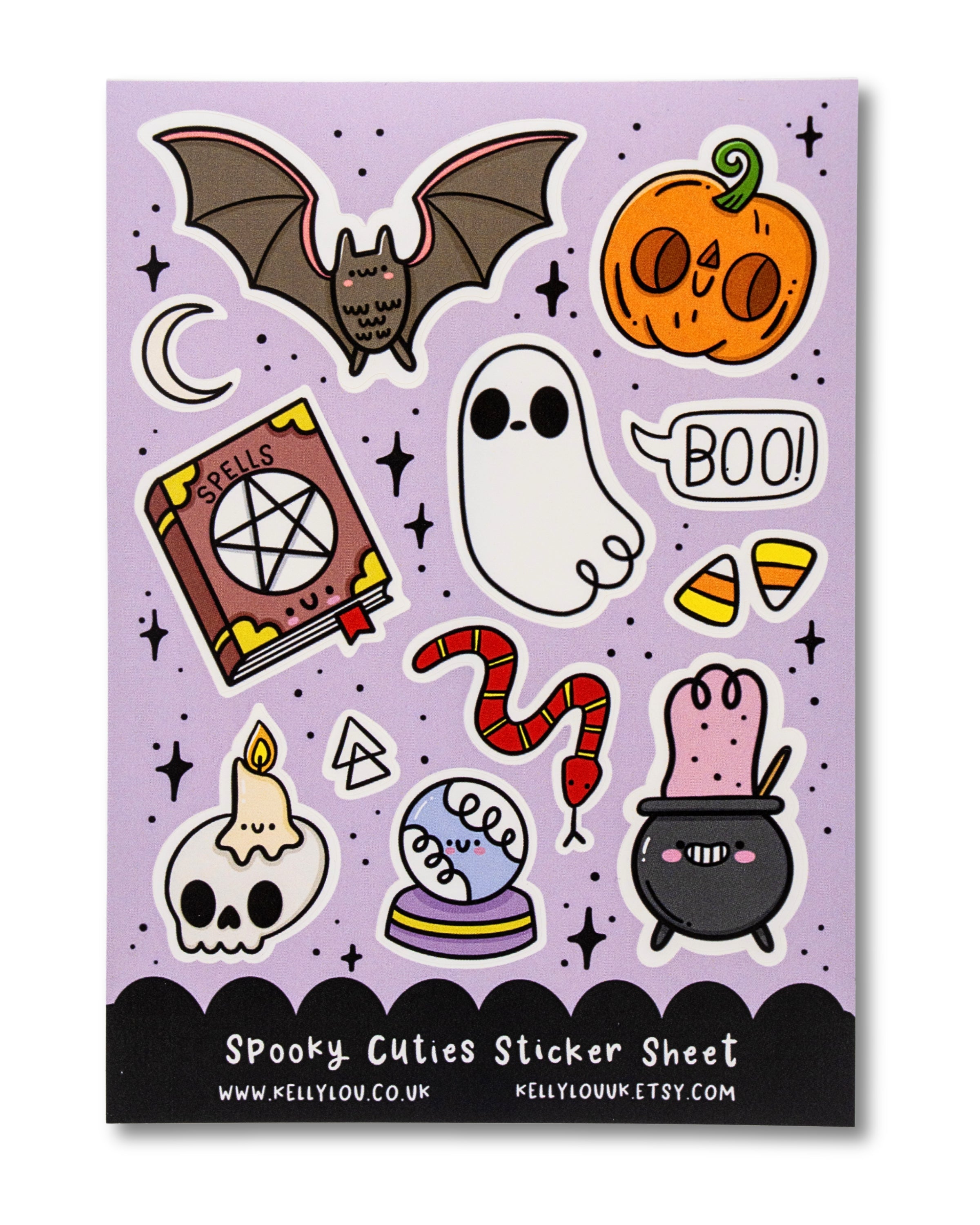 The Spooky Cuties Matte Vinyl Sticker Sheet by Kelly Lou is packed with 12 frightfully cute Halloween-themed stickers that bring a perfect mix of spooky and sweet to your crafts, planners, and journals. Ghosts, pumpkins, and all your cuddly creepy faves are here to help you celebrate spooky season in style!