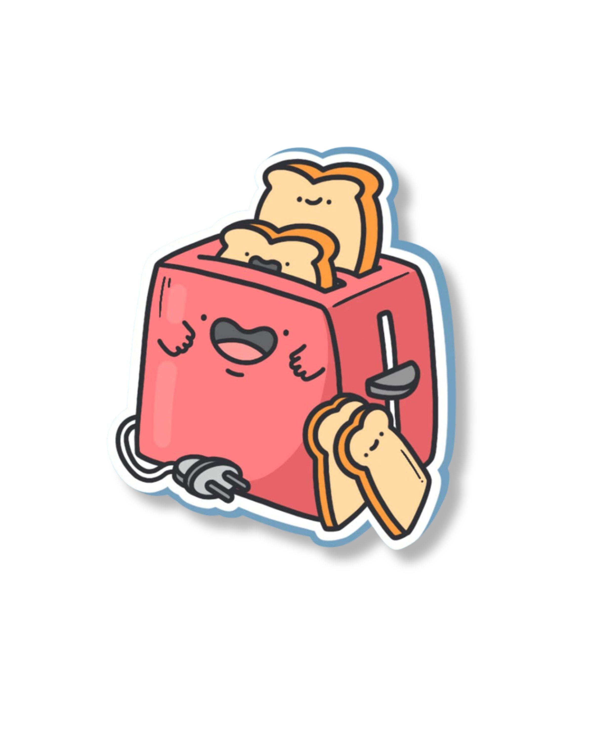 Featuring a chonky red toaster with two slices of smiling toast popping out, this little design is a slice of joy for your laptop, notebook, water bottle – or even your actual toaster!