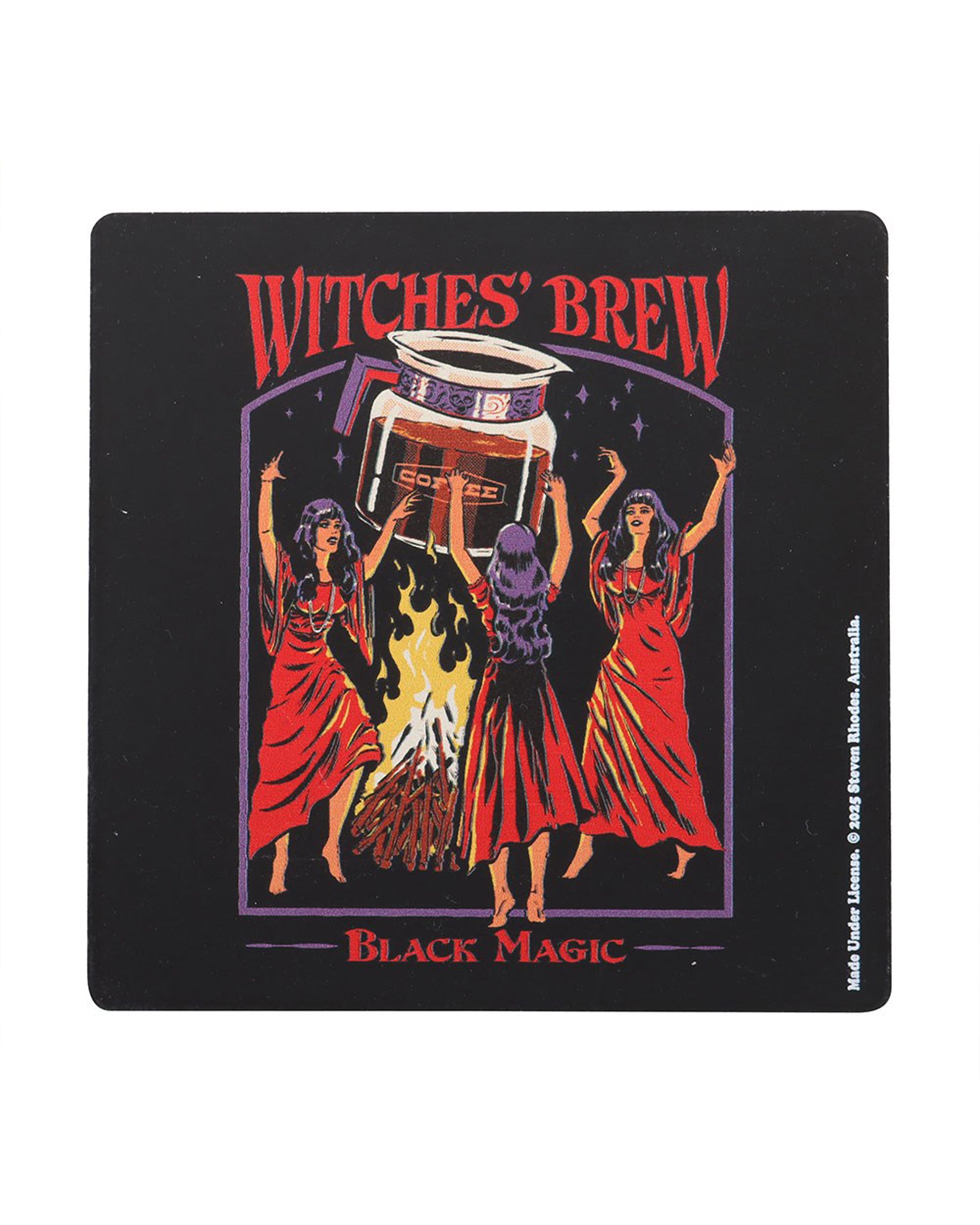 The Witches' Brew Coaster by Steven Rhodes is a retro inspired gothic homeware piece that keeps your table safe from spills while adding a dash of witchy humour. Featuring three witches raising a giant pot of coffee like a sacred ritual, this officially licensed design is perfect for caffeine fiends and lovers of the alternative aesthetic.